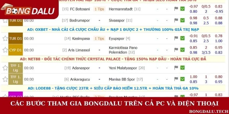 Tham gia Bongdalu trên điện thoại Android và iOS